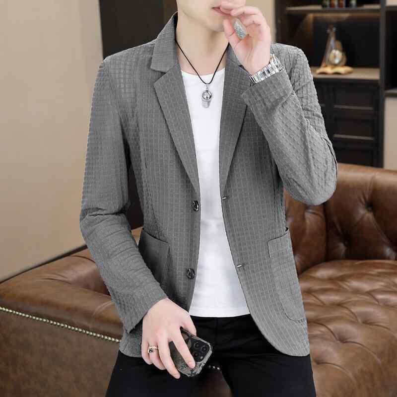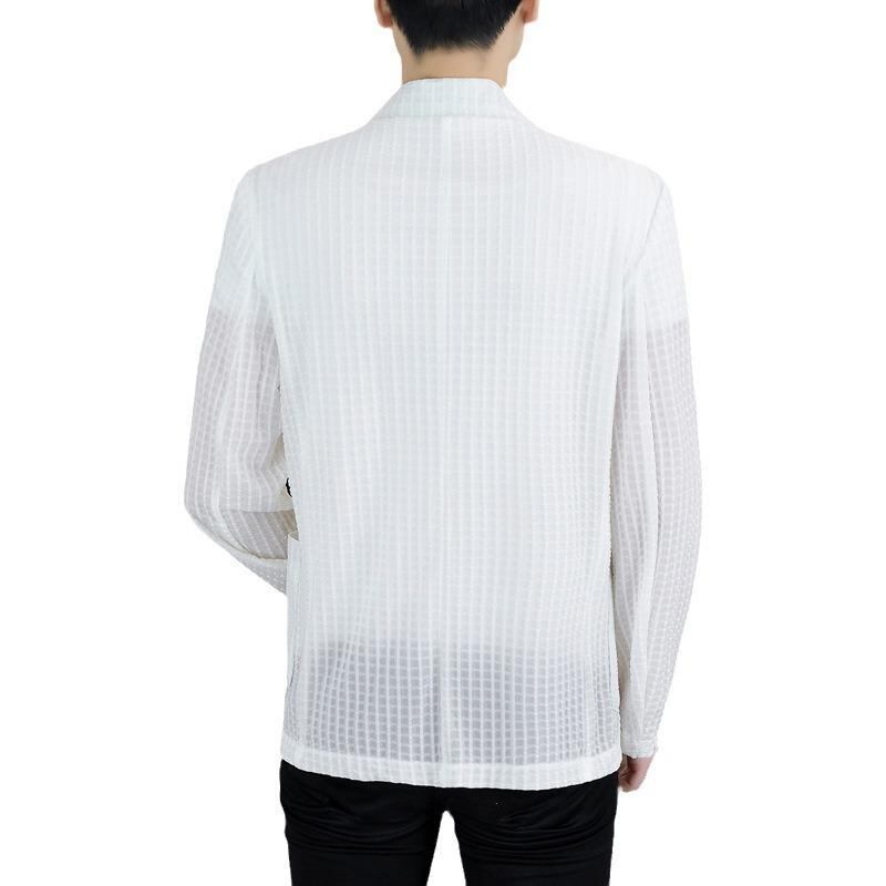 テーラードジャケット メンズ 春夏 接触冷感 ストレッチ UVカット スリムフィット 薄手 軽量 防シワ 無地 綿 ビジネス カジュアル クールビズ 通勤 グレー ブラック