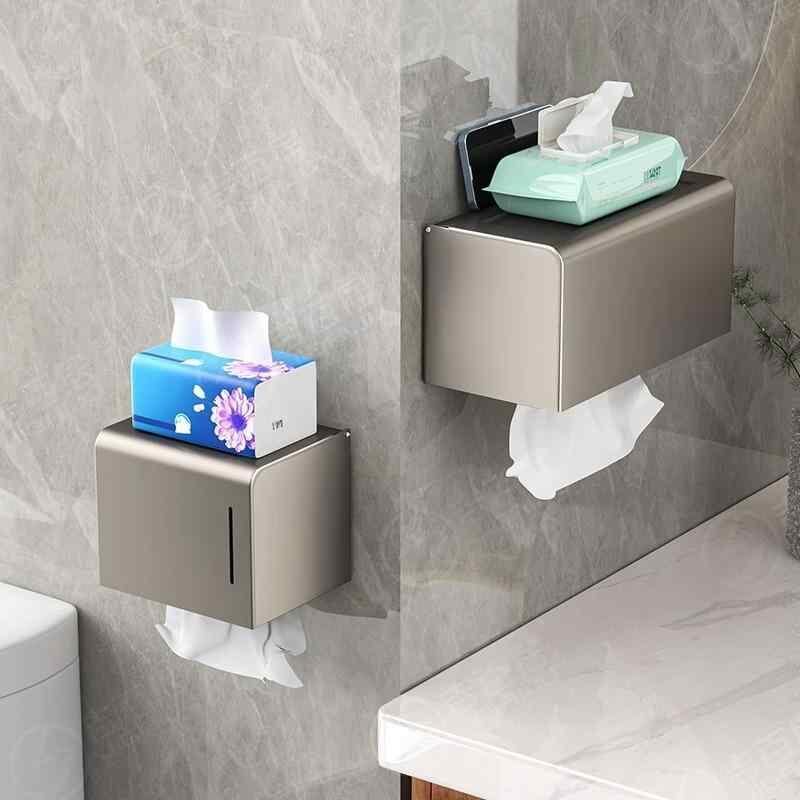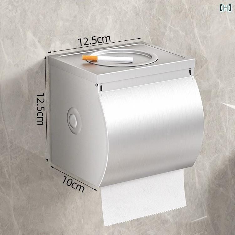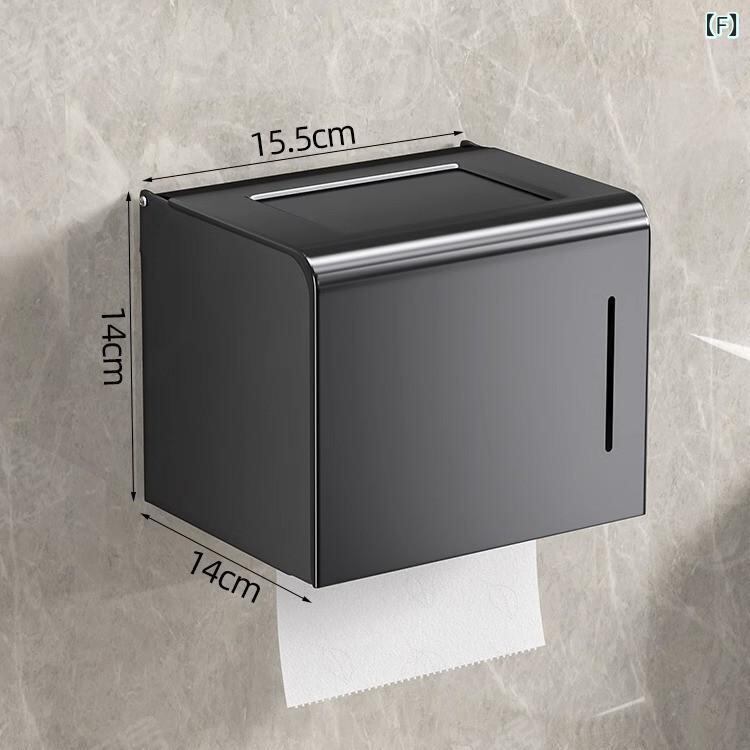 トイレットペーパーホルダー 壁掛け 穴開け不要 粘着式 防水 スペースアルミ製 ガンメタリック グレー 収納棚付き 小物置き 多機能 バスルーム トイレ 洗面所 モダン スタイリッシュ シンプル おしゃれ