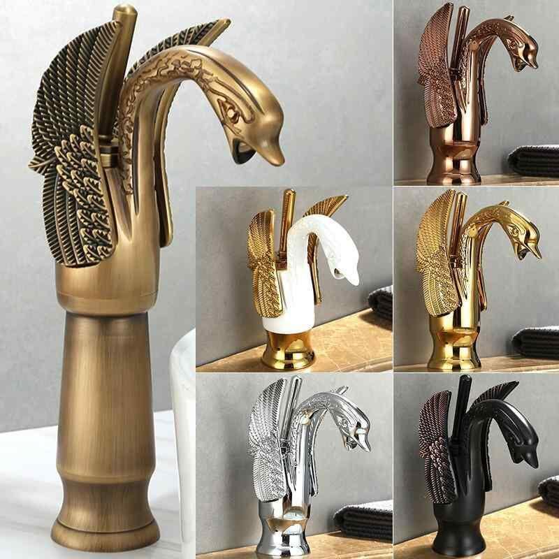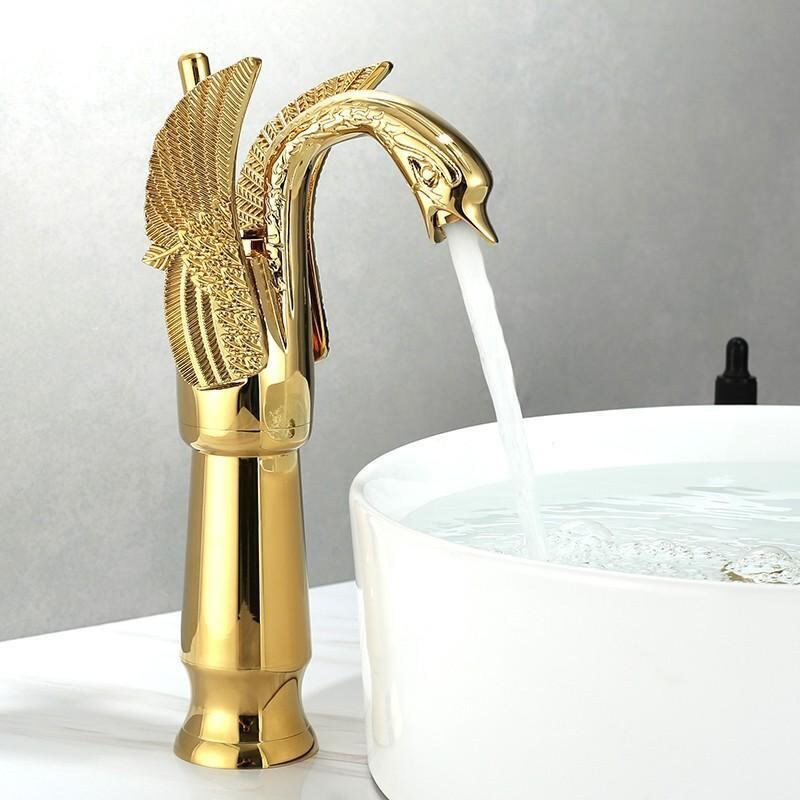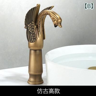 蛇口 真鍮製 欧風 アンティーク調 ゴールド 洗面ボウル用 トールタイプ 混合機能 電気メッキ加工 セラミックバルブ 高級感 デザイン 洗面台用