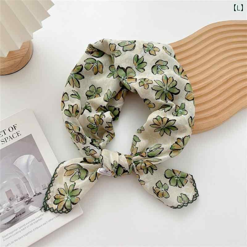 スカーフ レディース 綿麻 正方形 68cm 通年 花柄 フラワーモチーフ 日よけ UV対策 首元アクセサリー ネックウェア オフィス 通勤 ビジネススタイル カジュアル シャツスタイル 大人かわいい 清楚 エレガント