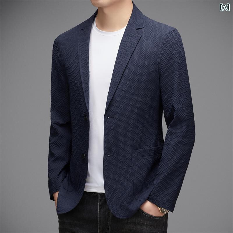 ジャケット メンズ スタイリッシュ カジュアル 薄手 軽量 長袖 UVカット 春夏 ビジネス オフィス 通勤 普段使い ポリエステル ネイビー ブルー ホワイト カーキ アウター