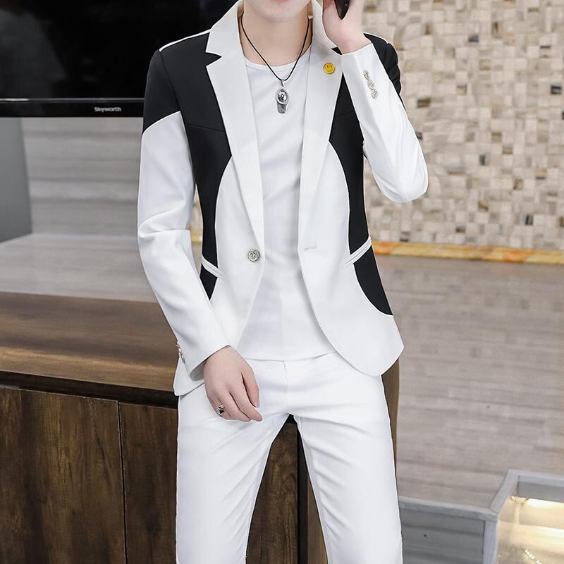 スーツ メンズ 春秋 テーラードジャケット 切り替え スリムフィット 韓国ファッション ビジネス フォーマル オフィス カジュアル ホワイト グレー ブラック