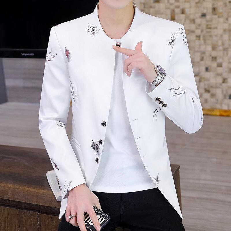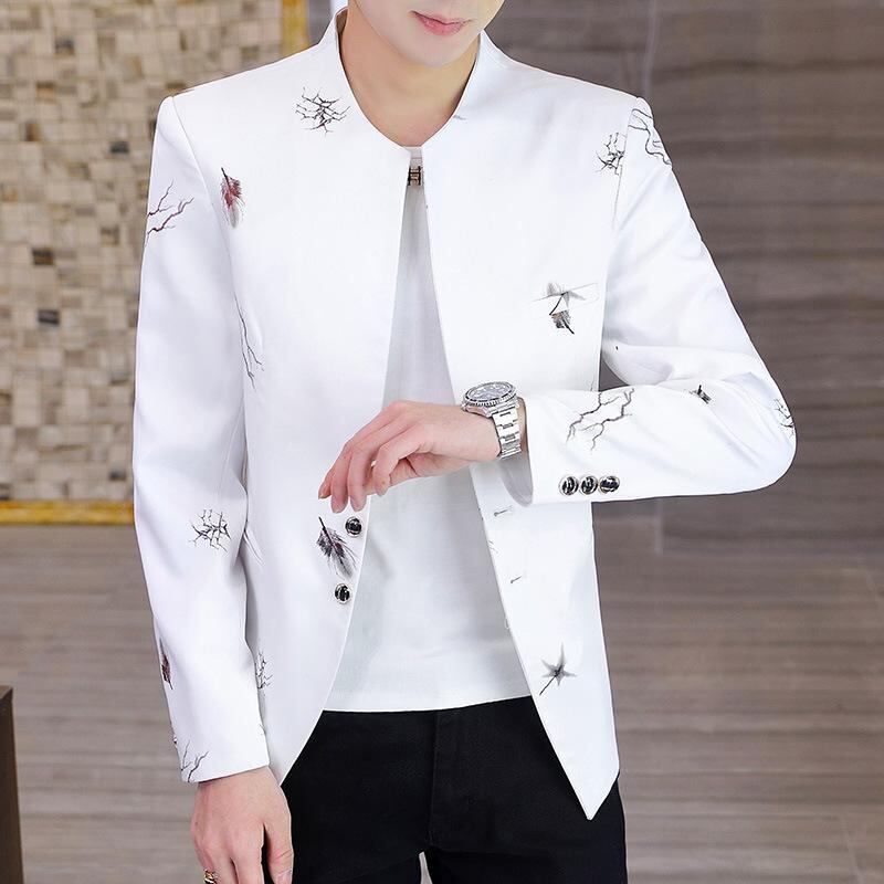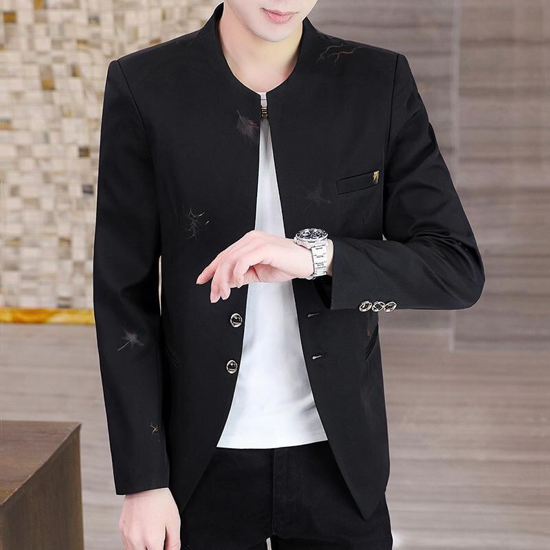ノーカラー テーラードジャケット メンズ ゆったり カジュアル 切り替え 長袖 シングルブレスト 1つボタン ウォッシャブル 綿ポリエステル混 ブリットスタイル デイリーユース ホワイト ブラック