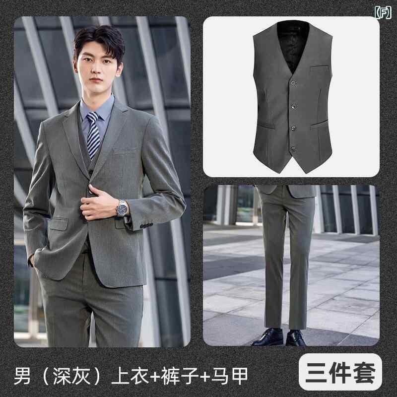 スーツ メンズ スリーピース スリムフィット 細身 韓国風 おしゃれ フォーマル 礼服 結婚式 新郎 披露宴 介添人 ビジネス オフィス 通勤 面接 セットアップ ジャケット ベスト パンツ ブラック ダークグレー