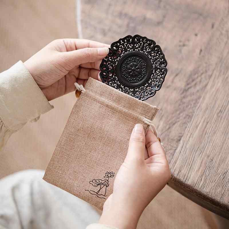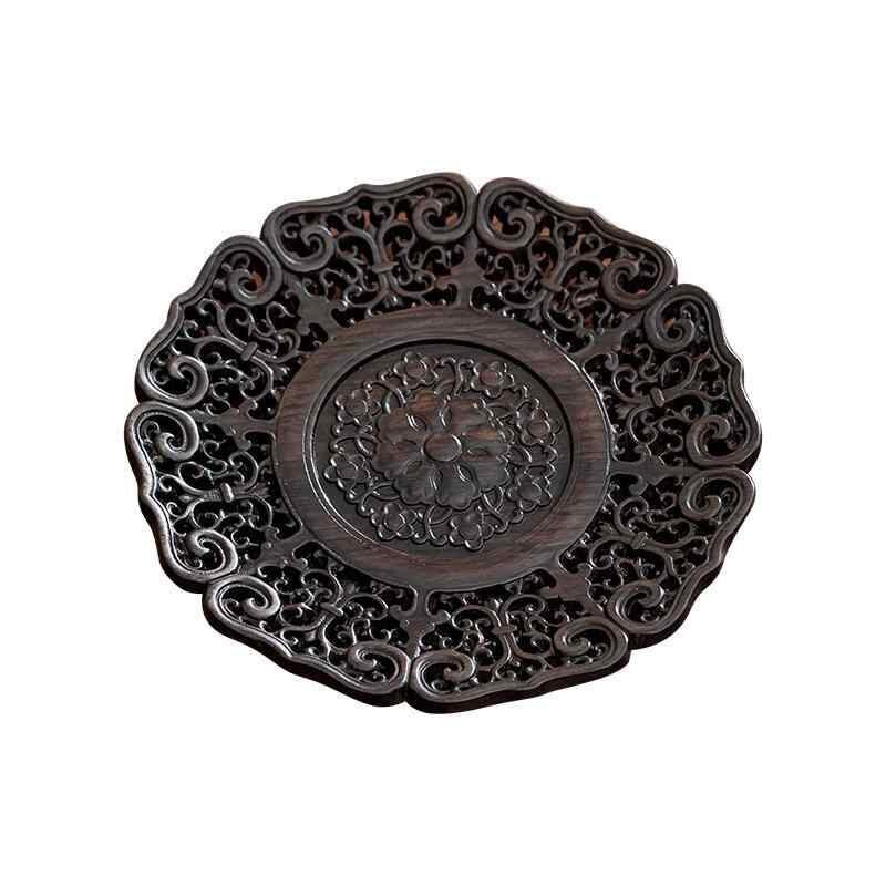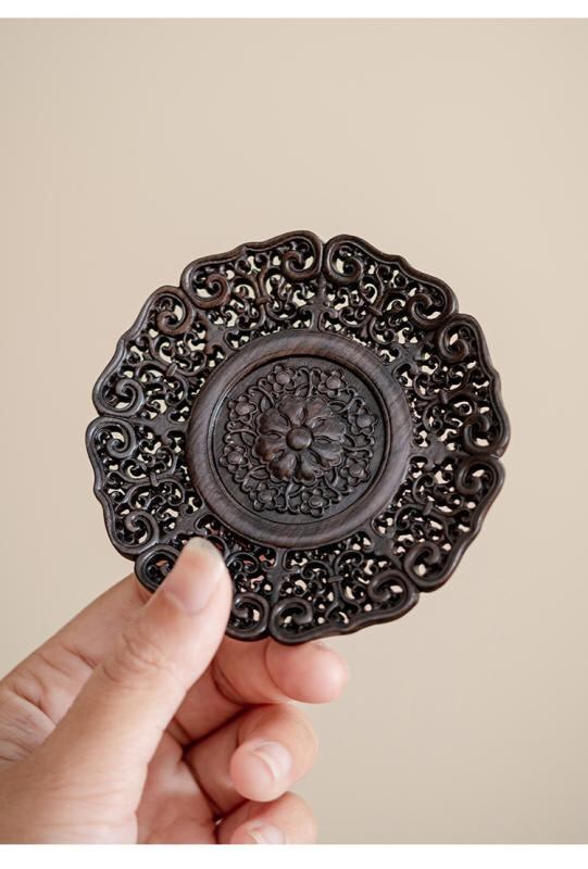 茶托 紫檀 木製 高級感 透かし彫り 蓮文様 彫刻 禅風 レトロ アンティーク調 新中国風 モダン 断熱 茶器 茶杯敷き 来客用 お茶席 コースター