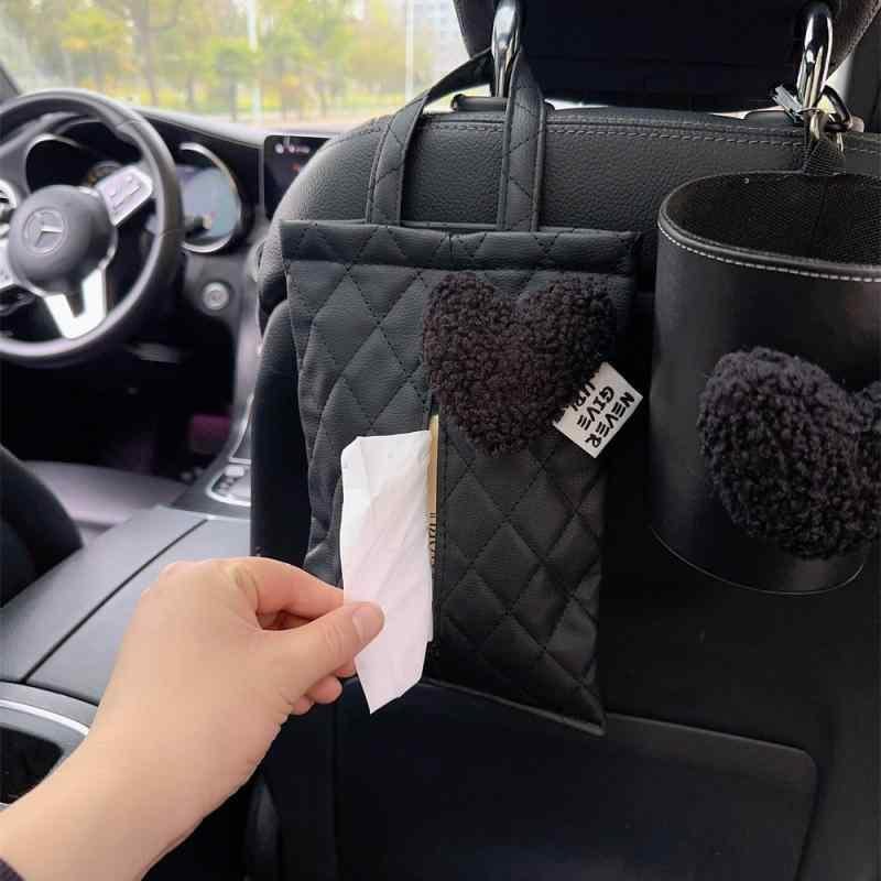 カー用品 レディース 女性用 車載 シートバック 多機能 ティッシュケース ゴミ箱 ダストボックス 2way一体型 レザー おしゃれ かわいい 収納 ドライブ 車内整理 便利 ベージュ ピンク ブラック レッド
