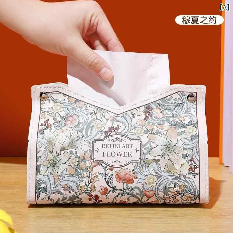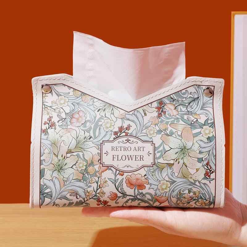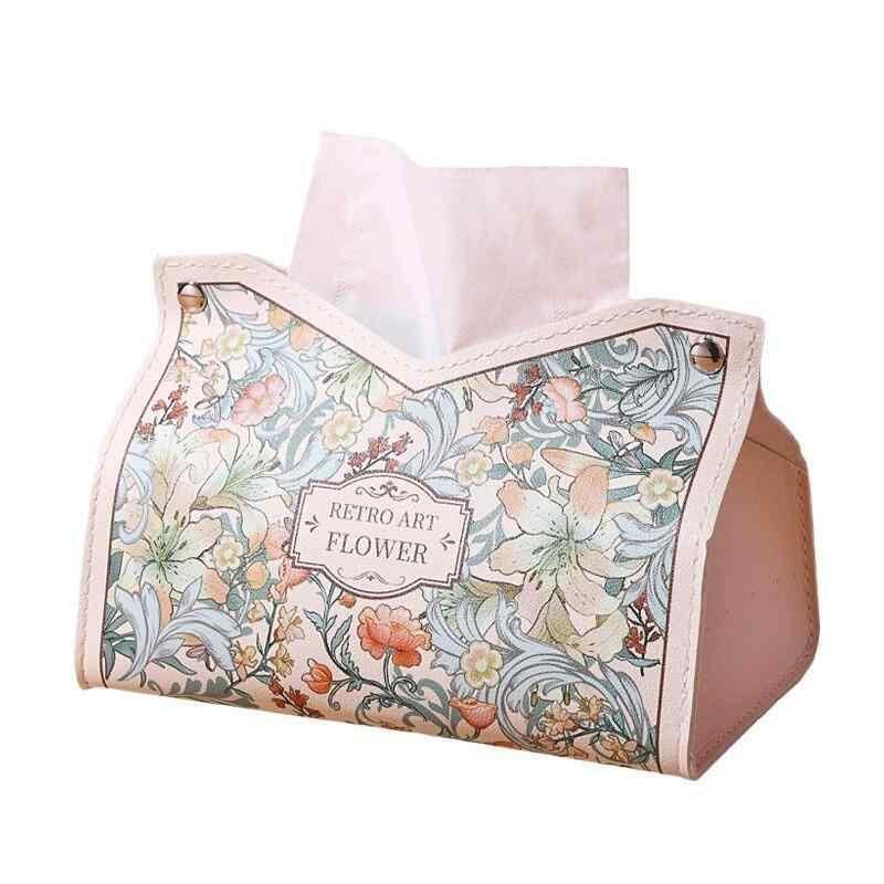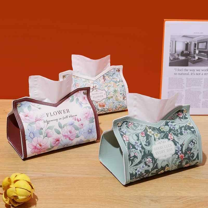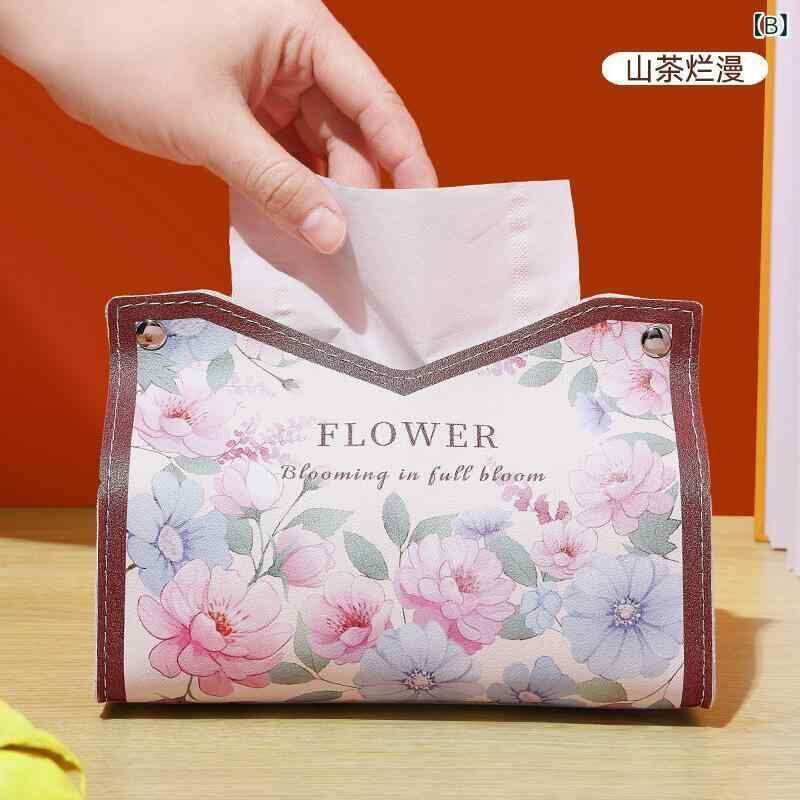ティッシュケース おしゃれ 高見え レザー 革製 リビング ダイニング 卓上 玄関 洗面所 車載 車内用 防水 多機能 多用途 インテリア ボックス型 花柄