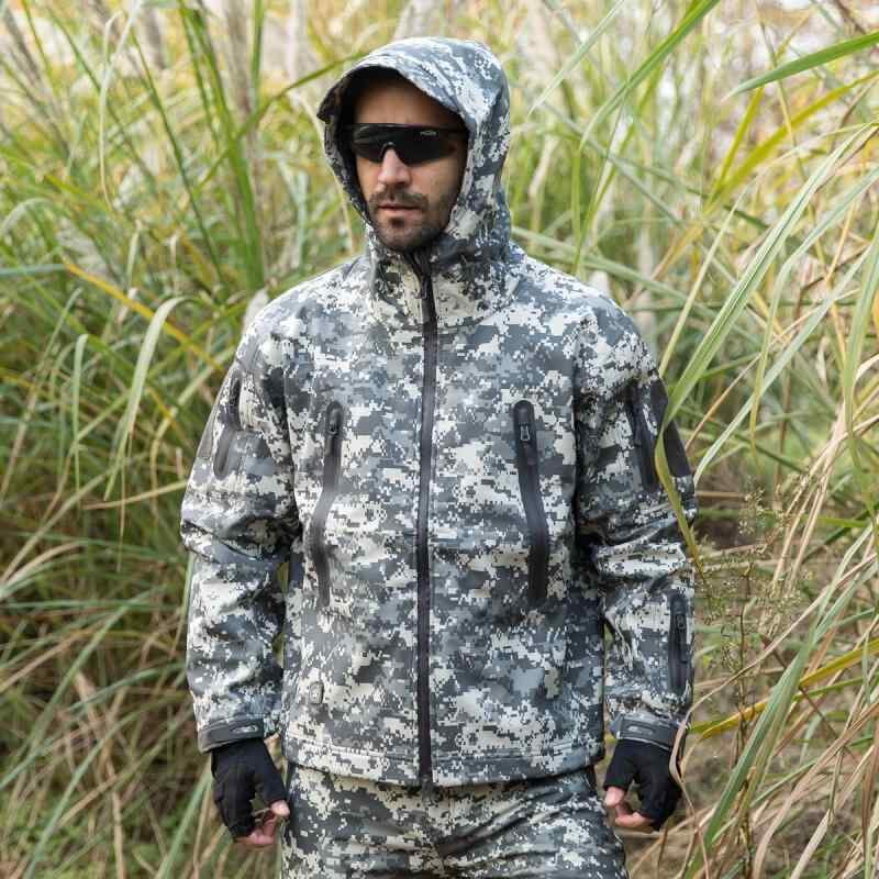 ソフトシェルジャケット メンズ 男性用 防風 保温 防寒 シャークスキン フード付き ポリエステル 撥水 PUコーティング アウトドア 登山 キャンプ タクティカル ミリタリー ワーク ハイキング 釣り 秋冬 耐摩耗
