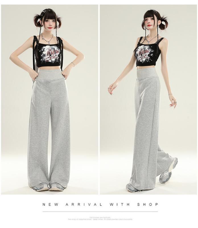 カジュアルパンツ レディース アメカジ レトロ ヴィンテージ ワイド ゆったり ハイウエスト ロールアップ 落ち感 コットン ロング丈 ヘザーグレー 春夏 スタイルアップ