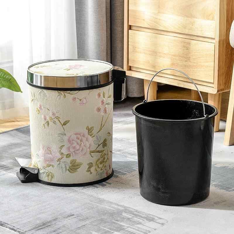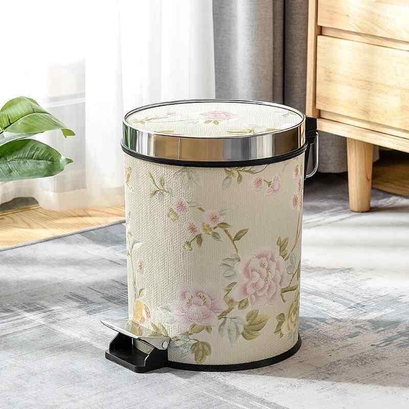 ゴミ箱 家庭用 フットペダル式 蓋付き おしゃれ モダン レザー調 円筒形 12L リビング キッチン 洗面所 寝室 ヨーロピアン