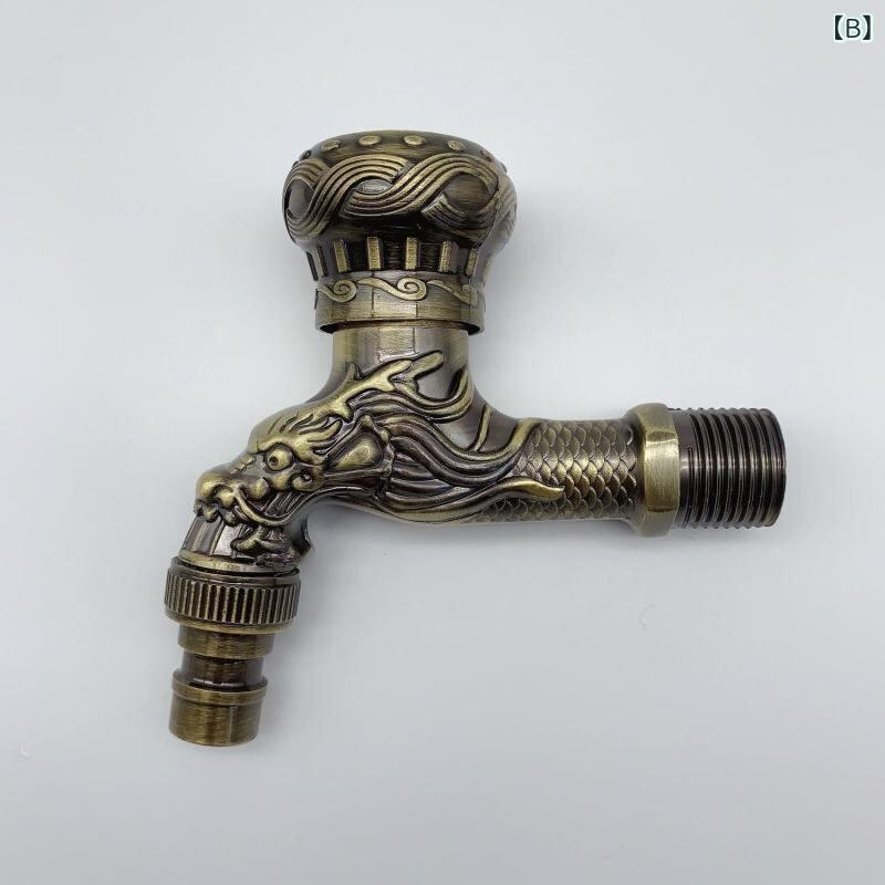 蛇口 壁付け 凍結防止 亜鉛合金 レトロ調 アンティーク加工 龍型 ドラゴンデザイン 洗濯機用 バルコニー 屋外 庭 多目的 水栓