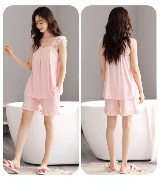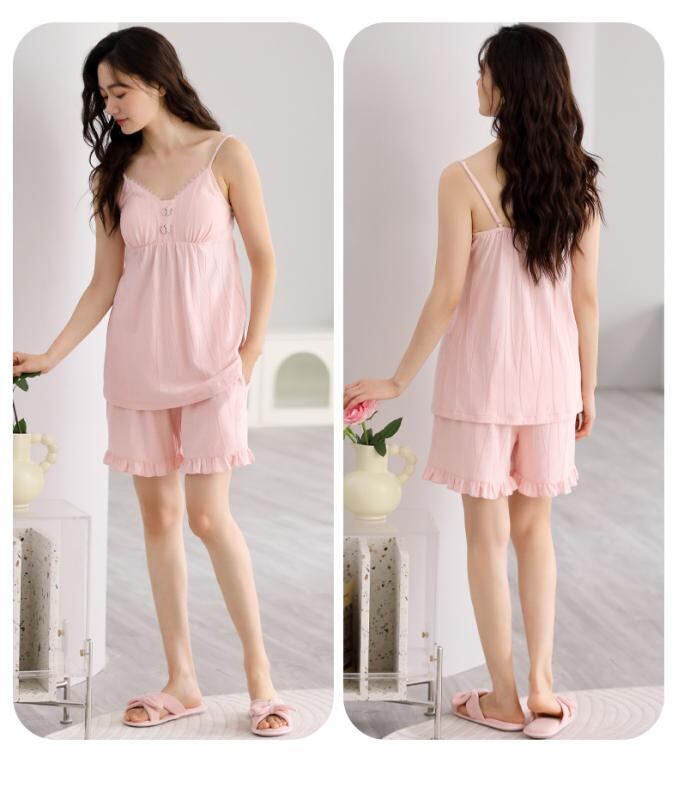 パジャマ レディース ルームウェア 夏 キャミソール ショートパンツ 上下セット カップ付き セクシー スイート 部屋着 綿100% 薄手 通気性 快適 伸縮性 ワンマイルウェア