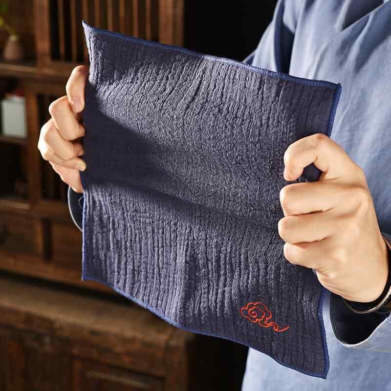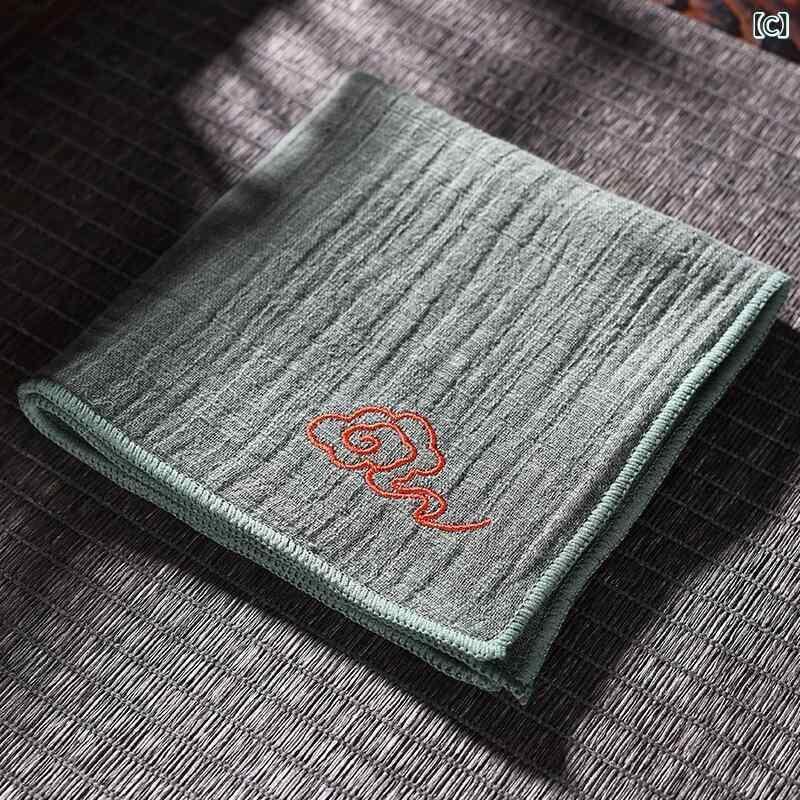 茶巾 綿麻 刺繡 祥雲柄 厚手 吸水性 茶器拭き ふきん 家庭用 茶道具 茶席 お茶会 中国風 新中式スタイル おしゃれ 個包装 ブラウン グリーン ネイビー アプリコット コーヒー