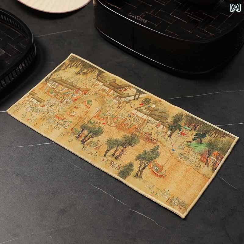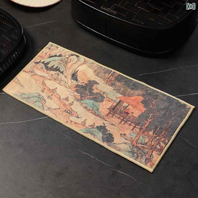茶布 中華風 中国風 禅意 国潮スタイル 絵付け 手描き風 綿麻素材 コットンリネン やわらか ソフト 肌触り良い 厚手 吸水性 速乾 茶器マット 茶碗敷き 茶道具 ふきん