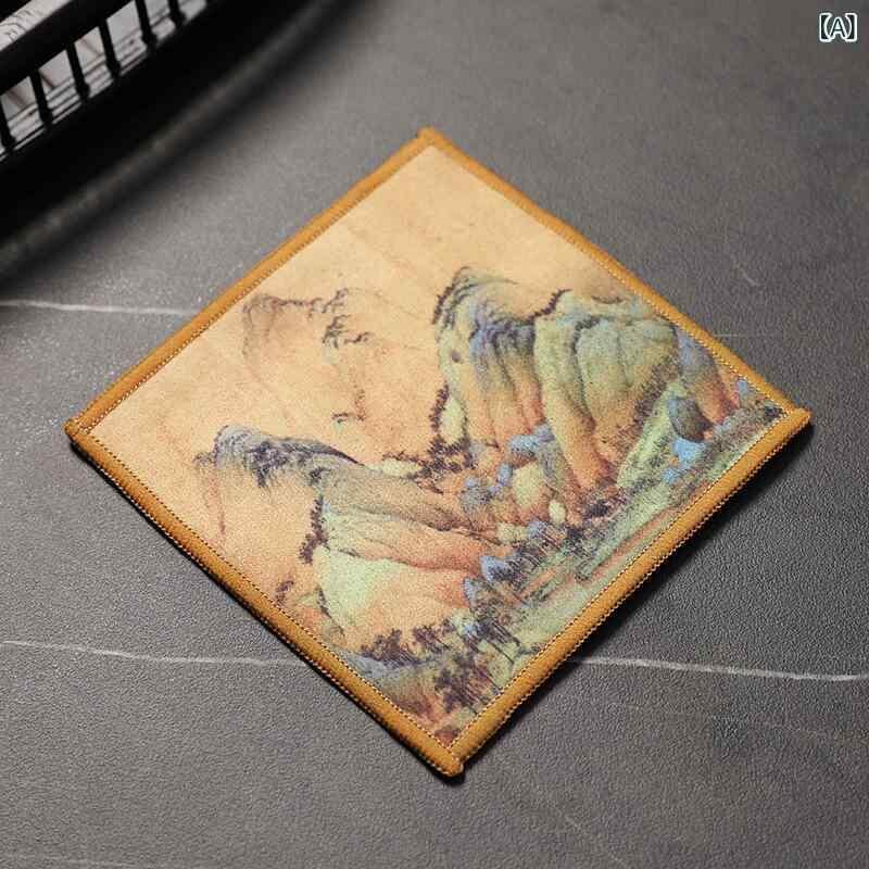 茶巾 新中式 レトロ 厚手 吸水性 鹿革調ベルベット 茶器用クロス 茶道用ふきん 茶席用マット 茶道具 アクセサリー 千里江山 清明上河図