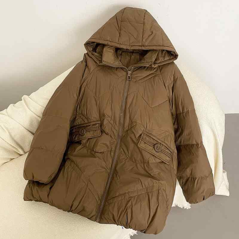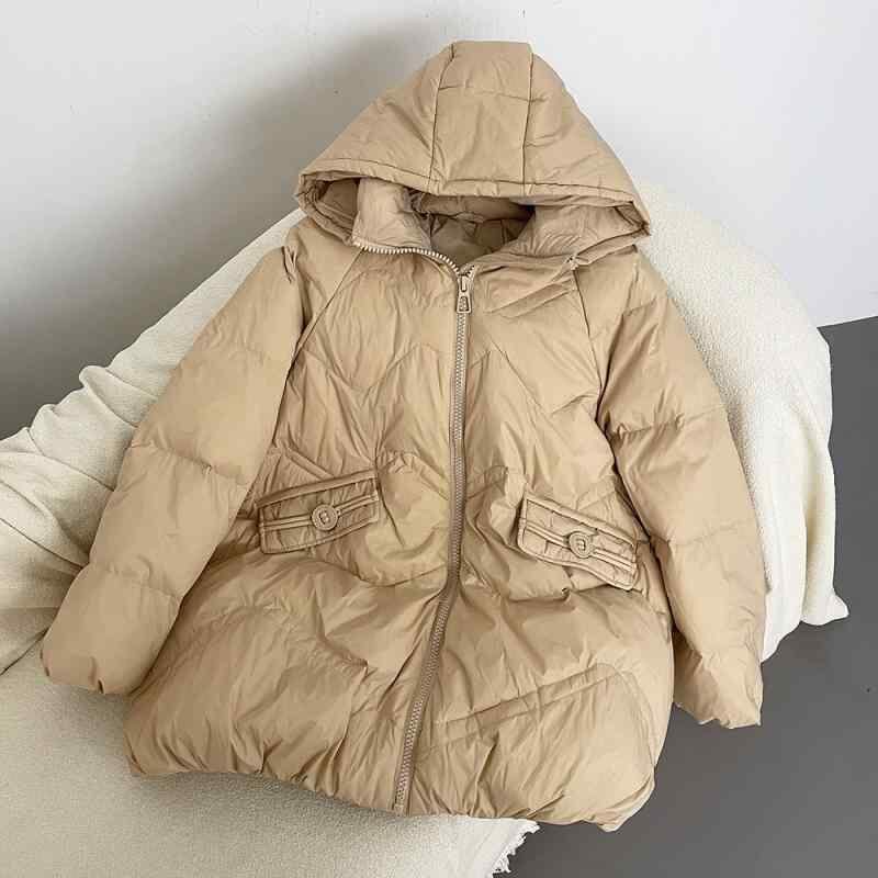 ダウンジャケット レディース フード付き ゆったり 大きいサイズ 韓国風 カジュアル アウター 上品 シンプル ミドル丈 ホワイトダックダウン 秋冬