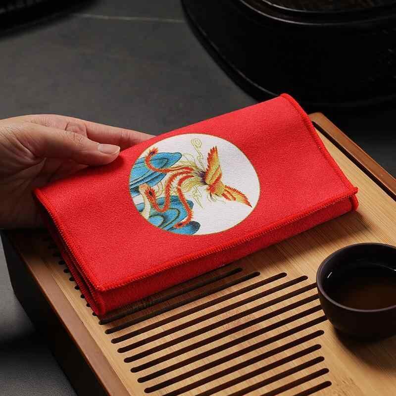 茶巾 チャイナスタイル 中国風 スエード 鹿皮調 厚手 吸水 速乾 毛羽立ち防止 茶布 拭き取り タオル 茶道具 茶器 用品 鳳凰柄 青 黄 湖水色 赤