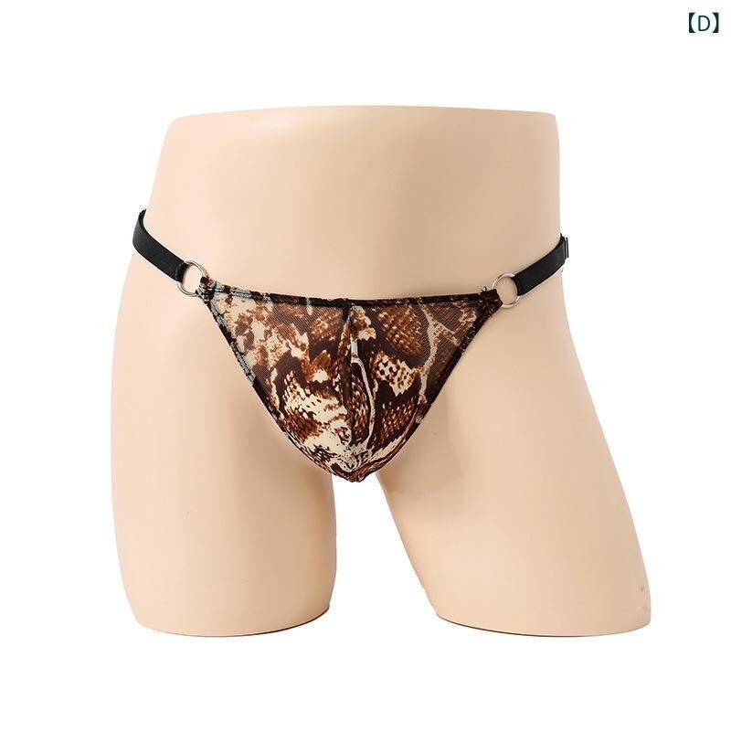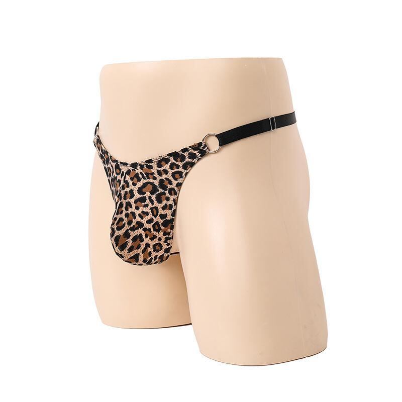 メンズ下着 男性用 Tバック ストラップデザイン ヒョウ柄 メッシュ スパンデックス素材 伸縮性 フルポーチ ワイルド ナイトウェア プレイウェア