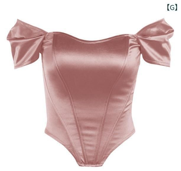 トップス レディース 女性用 フィッシュボーン コルセット ベアトップ サテン オフショルダー ビスチェ キャミソール エレガント 上品 華やか ショート丈 春夏