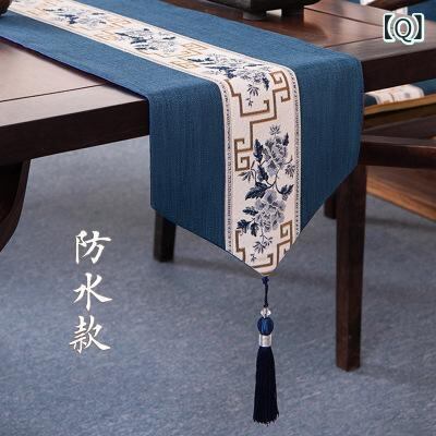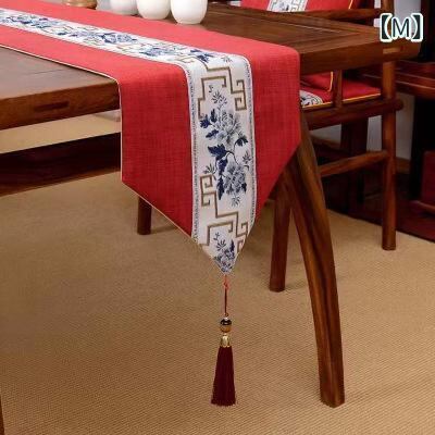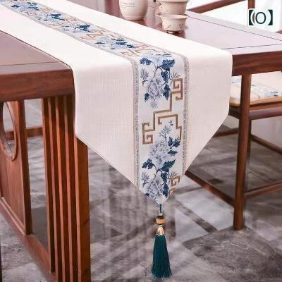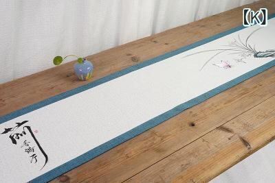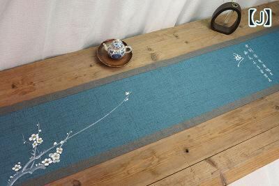 テーブルランナー 新中華風 禅テイスト 和モダン レトロ調 茶席 ティーマット 食卓 ダイニング 綿麻 防水 ロング 手描き風 墨竹 白梅 牡丹柄