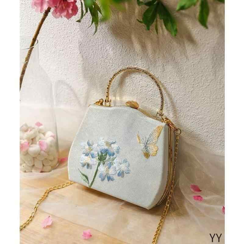 バッグ 新中国風 藍緑色 ダークグリーン系 レトロ 漢服 チャイナドレス風 刺繍 がま口 ショルダーバッグ ハンドバッグ 綿麻 コットンリネン カジュアル 旅行 普段使い 鞄