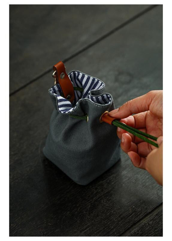 茶器 茶道具袋 急須 茶碗 湯呑み カップ ミニ茶器セット 布製 ファブリック 巾着 携帯 旅行 トラベル 収納 保管 整理 持ち運び 吊り下げ オーガナイザーポーチ イエロー グレー ブラウン