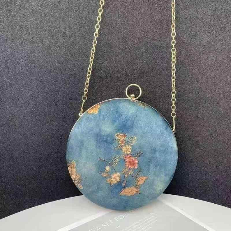バッグ 刺繡 古風 中国風 チャイナ風 レトロ がま口 ミニラウンド 鞄 ポシェット イブニング パーティー 和装 デイリーユース エレガント 上品 レッド 赤