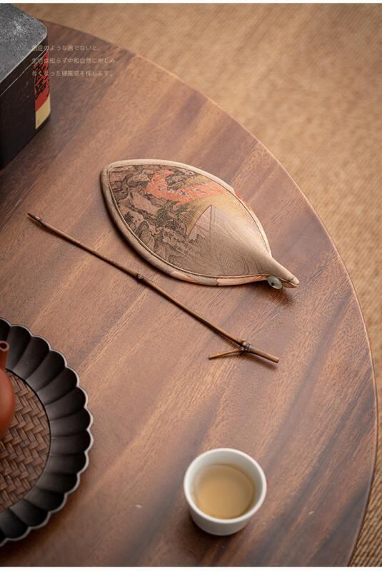 茶則 中国式 竹製 藤編み 漆塗り 緞子 葉型 箕型 茶荷 茶匙 茶撥 茶葉用 上品 高級感 手作り アジアンテイスト 茶道 茶器 小物 おもてなし ティー用品