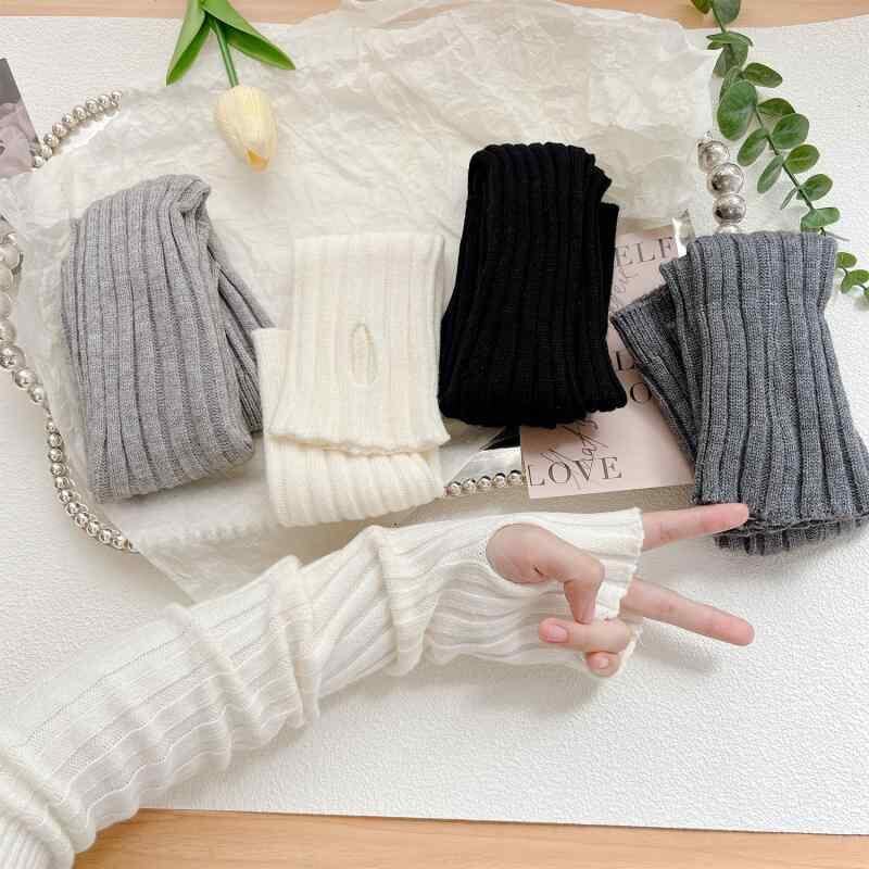 アームウォーマー 男女兼用 ユニセックス 秋冬 日系 指なし フィンガーレス ニット グローブ 防寒 保温 ストライプ柄 サイクリング 通勤 通学 普段使い カジュアル シンプル 黒 オフホワイト ライトグレー ダークグレー