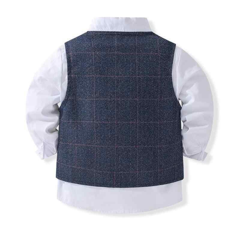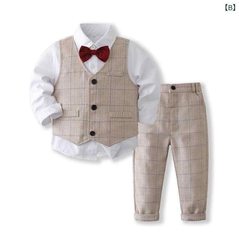 キッズ 男の子 フォーマルスーツ スリーピース ベスト ジャケット パンツ セットアップ ピアノ発表会 結婚式 入園式 卒園式 七五三 初誕生日 フラワーボーイ イギリス風 チェック柄 シングル 綿 柔らかな肌触り ネイビー カーキ 秋冬