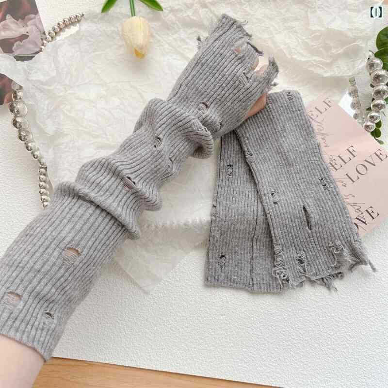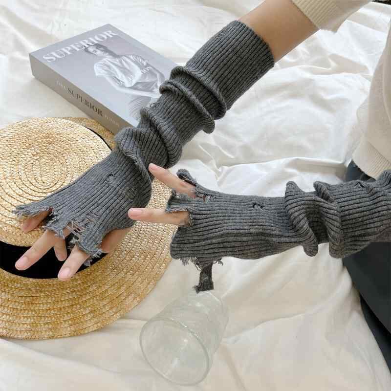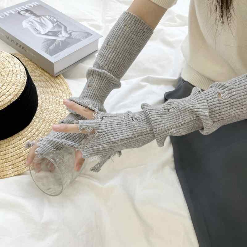 グローブ 男女兼用 カラフル ダメージ加工 指なし ニット 韓国風 秋冬 防寒 保温 防風 サイクリング 自転車 アウトドア 通学 学生 アームウォーマー