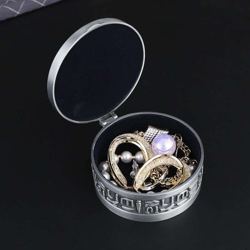 ジュエリーボックス 欧風 アンティーク レトロ 高級感 おしゃれ 小型 アルミ製 円形 指輪 リング ピアス ネックレス アクセサリー収納 小物入れ 結婚祝い 誕生日プレゼント ギフト ピューターカラー