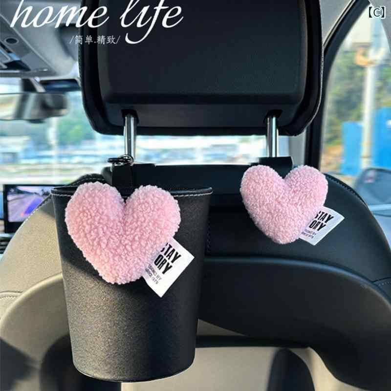 ティッシュケース レディース 女性用 車載 車用 吊り下げ ストラップ アームレスト シートバック取付 ライチ型押し ハートモチーフ 高級感 レザー調 ピンク ブラック ワインレッド