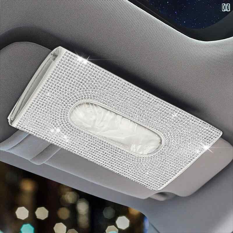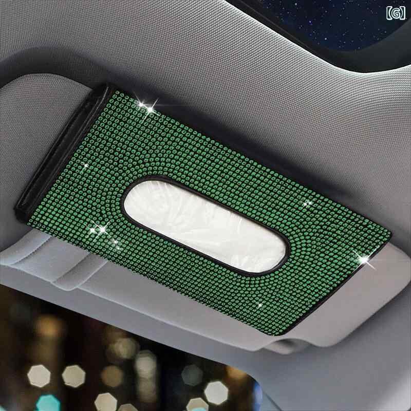 車載ティッシュケース レディース 女性用 レザー 合皮 全面ラインストーン 煌めく サンバイザー 吊り下げ式 高級感 エレガント おしゃれ ブラック ベージュ 車内小物 アクセサリー