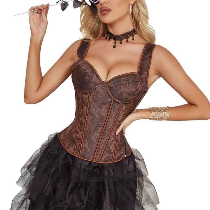 コルセット レディース 補正下着 ボディシェイパー ウエストニッパー バストアップ 腹部引き締め ボーン入り 編み上げ レトロ ゴシック 宮廷風 綿混素材 オールシーズン ファッション