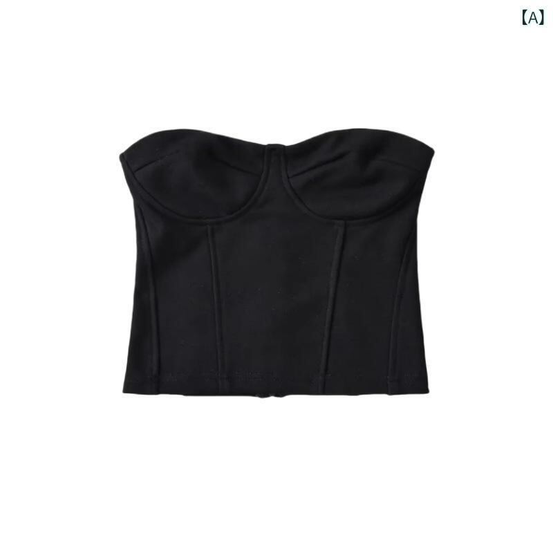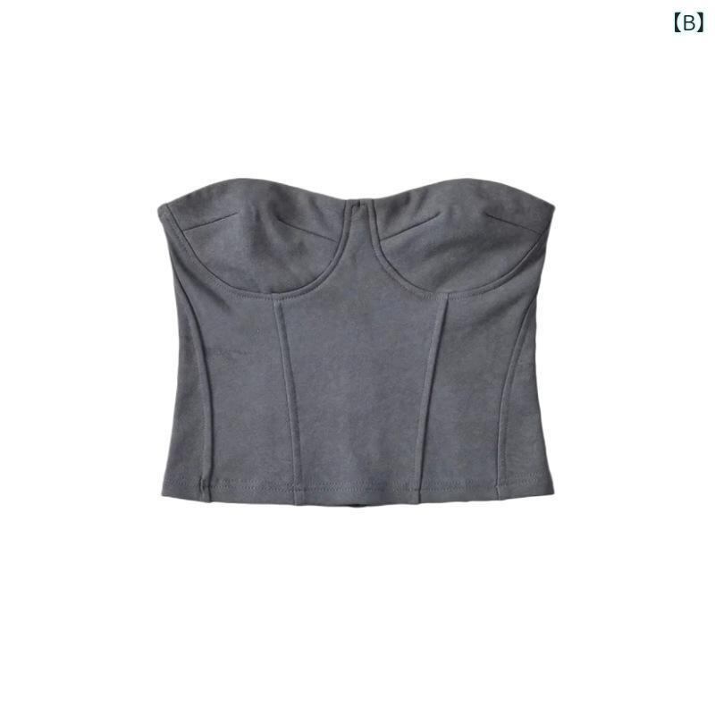 トップス レディース ストラップレス ベアトップ クロップド丈 スリムフィット ウエストシェイプ 一枚着 セクシー ギャル ストリート カジュアル 春夏 無地 万能 着回し ストレッチ ブラック ダークグレー