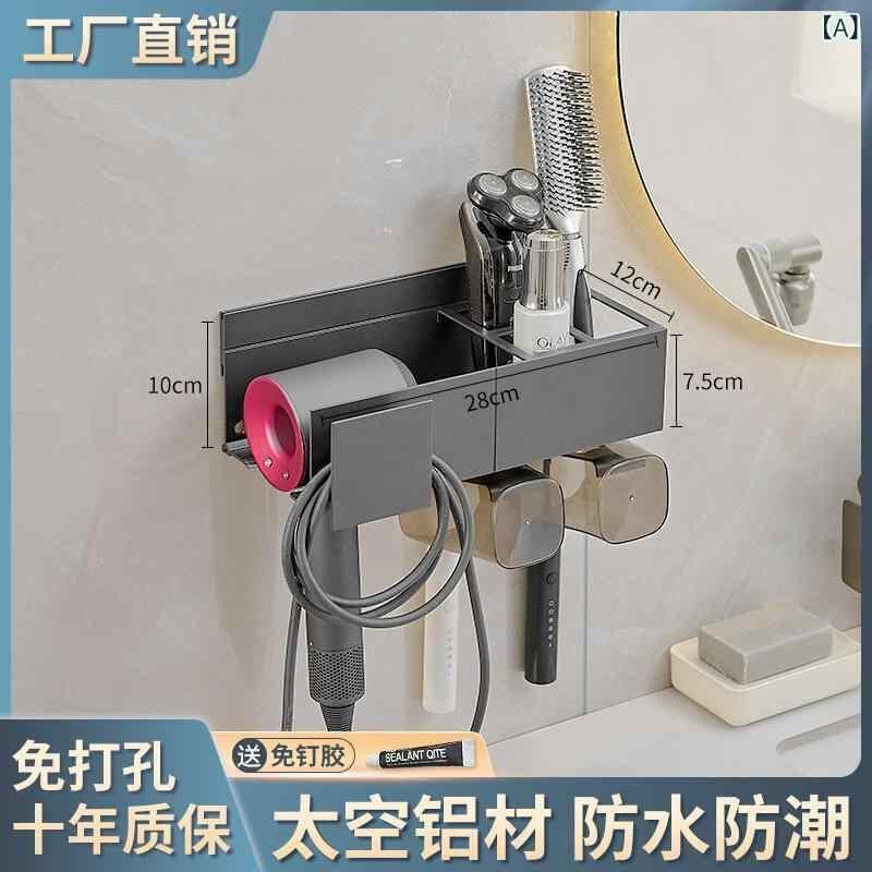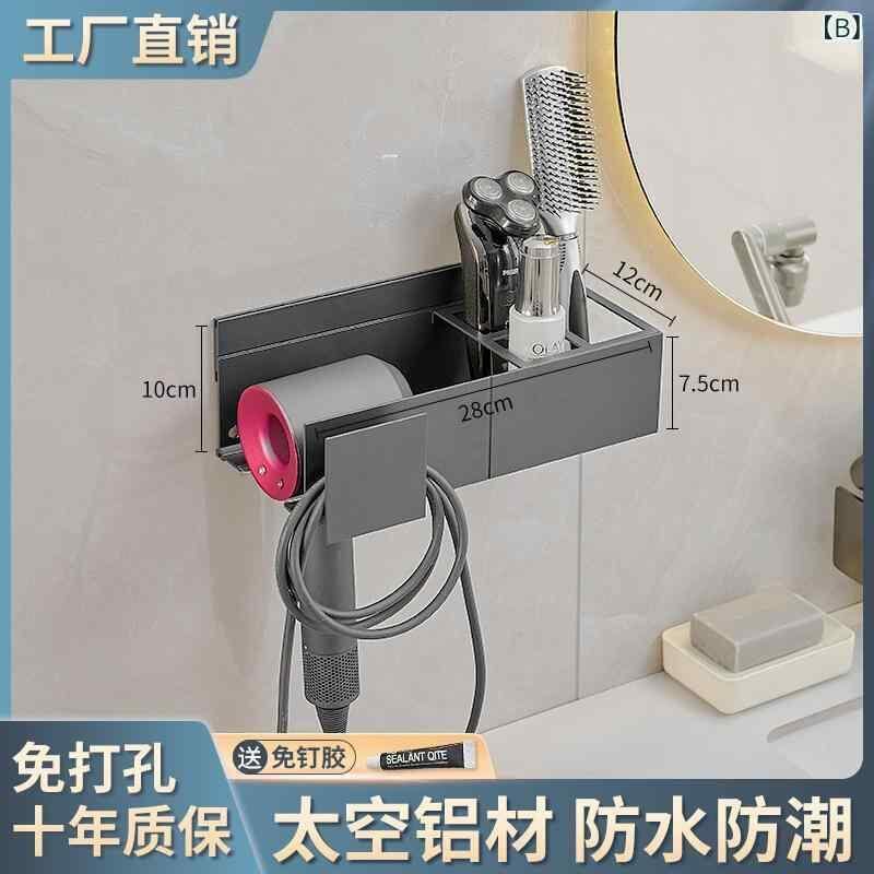 ドライヤーホルダー 浴室 洗面所 壁掛け 賃貸 穴開け不要 貼るだけ アルミ合金製 スタンド 収納 高級感 ガンメタリック 耐荷重20kg