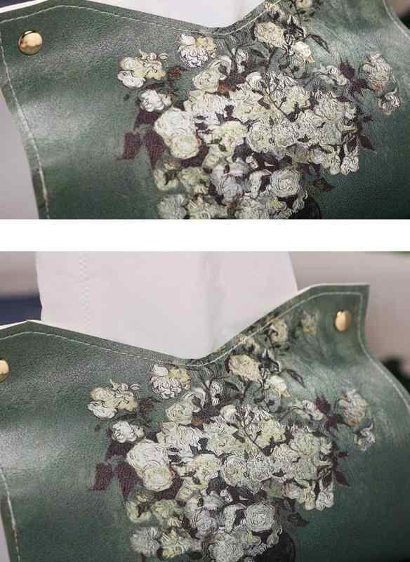 ["・主な素材: 皮革","・対応ティッシュ: 抽取式ティッシュ","・1箱あたり数量: 500個","・用途: 引越し祝い、販促","・スタイル: ライトラグジュアリー","・カラー: 蒼嶺グリーン","・サイズ: 約19x12x14cm","・カテゴリ: ティッシュケース","・機能: 防水、多機能","・装飾: プリント","・設置タイプ: 卓上"]
