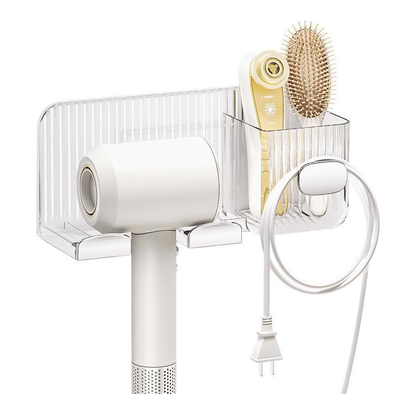 収納ラック ヘアドライヤースタンド 壁掛け 穴あけ不要 粘着式 賃貸向け プラスチック製 樹脂 バスルーム 洗面所 寝室 玄関 高級感 ゴールド 金色 厚手 丈夫 耐荷重 省スペース