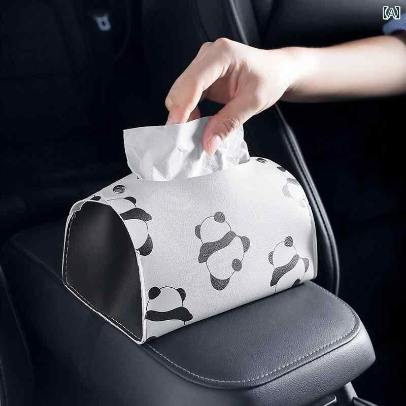 車載ティッシュケース かわいい おしゃれ 高級感 レザー調 合皮 パンダデザイン 防水 多機能 車内収納 ドライブ カー用品 ティッシュホルダー モダン シンプル 収納ボックス