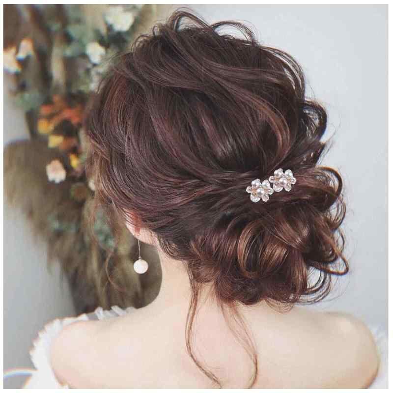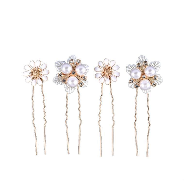 かんざし レディース ウェディング ブライダル 結婚式 花嫁 まとめ髪 パール パール ラインストーン ビジュー デイジー フラワー U字ピン ヘアスティック 手作り 髪飾り
