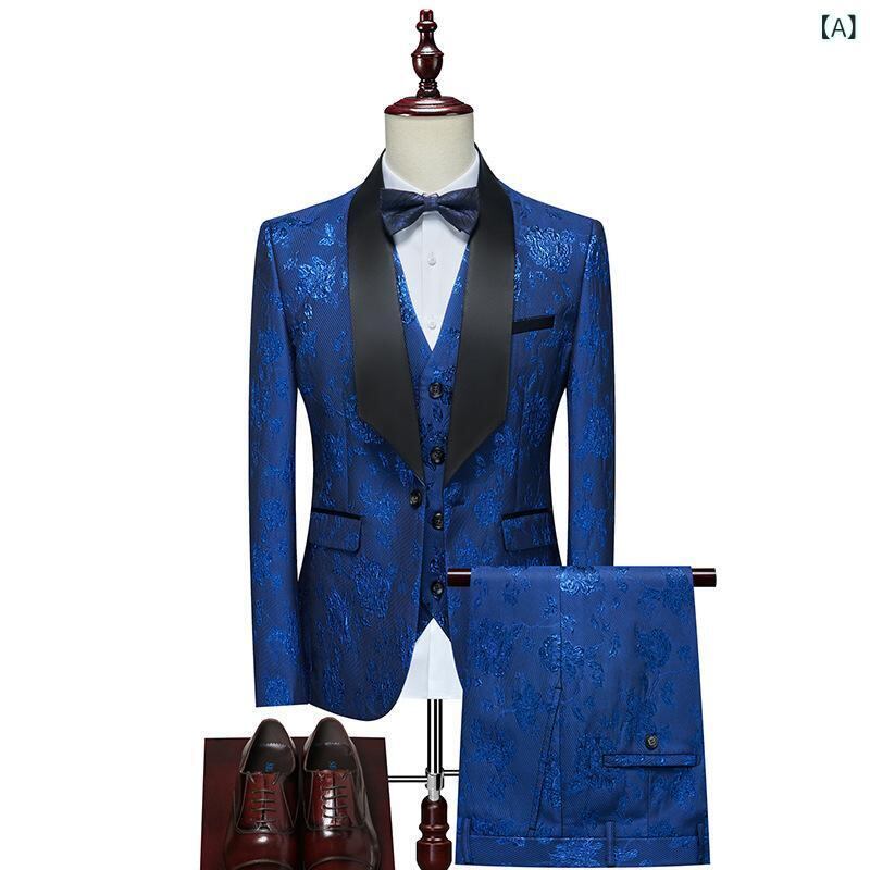 スーツ メンズ 男性用 3Dプリント スリーピース セットアップ タキシード 礼服 フォーマルウェア 新郎 結婚式 披露宴 パーティー 宴会 スリムフィット 細身 綿混紡 秋冬