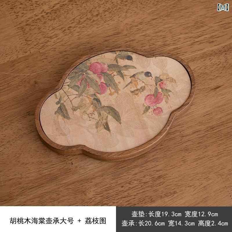 茶盤 ウォールナット材 カイドウ型 レトロ 新中式 乾式 急須台 急須トレイ 収納 ティーマット 卓上 ミニ 普段使い 和モダン