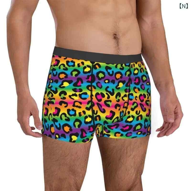 ボクサーパンツ メンズ 男性用 ヒョウ柄 プリント インナーウェア トランクス ミドルウエスト ポリエステル混紡 ニット カジュアル ファッション おしゃれ 下着 快適