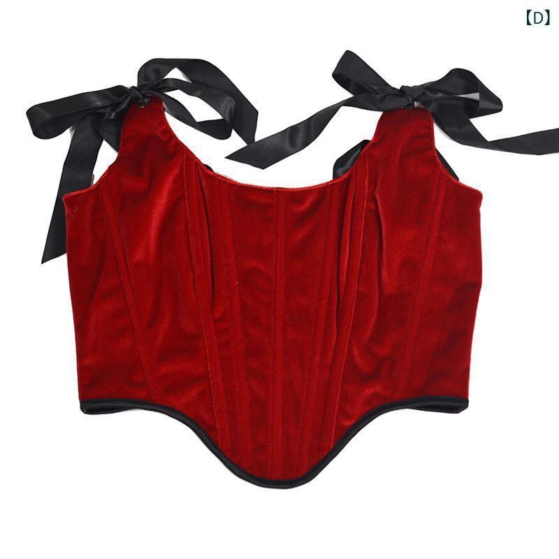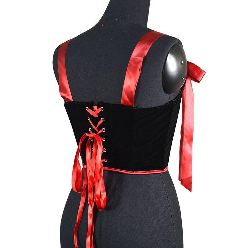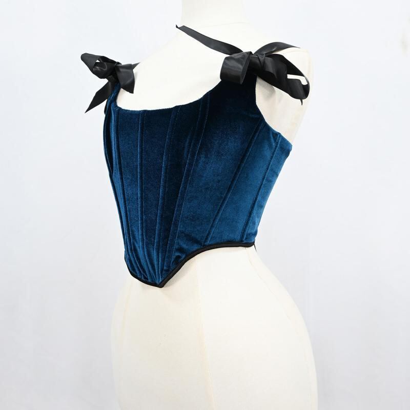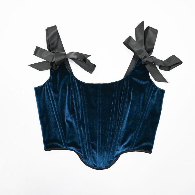 ビスチェ レディース ベロア素材 ダブルレイヤー ショート丈 バックタイ ボーン入りコルセット キャミソール バストアップ ウエストシェイプ 補正 タイトフィット トップス 黒 茶 緑 赤 青