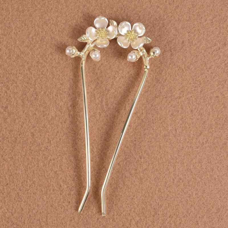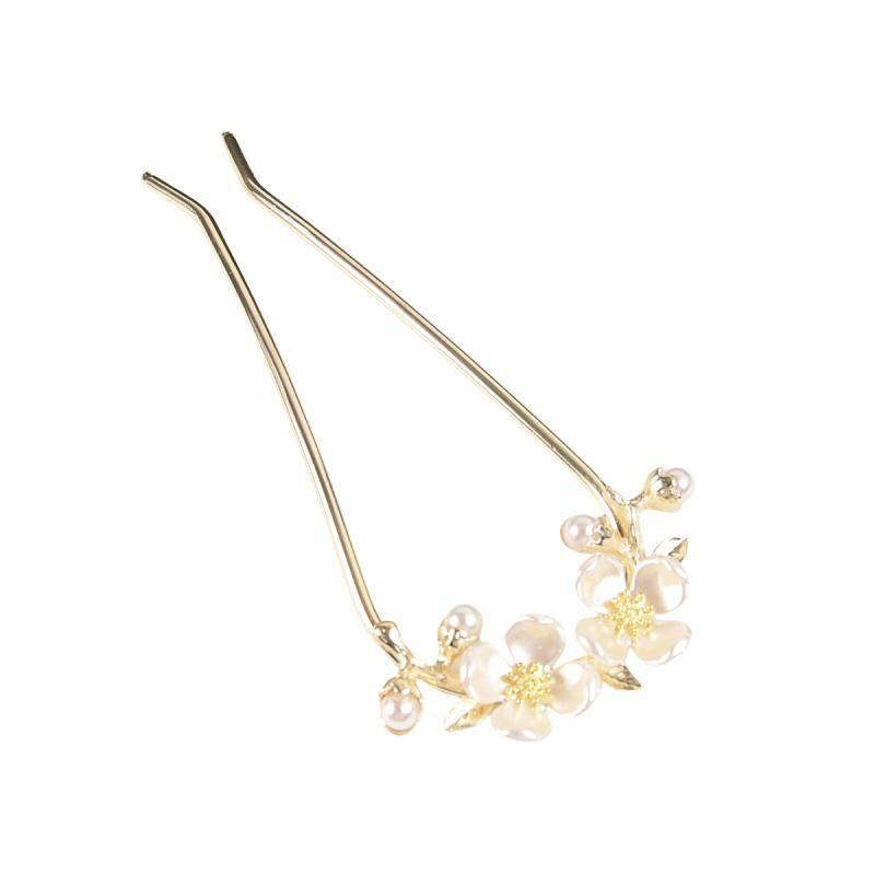 髪飾り レディース 簪 ヘアスティック まとめ髪 シニヨン用 古風 レトロモダン 花モチーフ U字型 高級感 エレガント チャイナドレス 和装 結婚式 披露宴 パーティー イベント 金属製 ライトゴールド 春夏