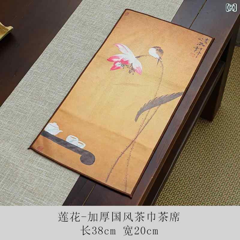 茶巾 絵付け 吸水 禅風 和柄 厚手 コットン スエード 牡丹 蓮 錦鯉 竹 伝統柄 花鳥風月 ティーマット 茶敷き 茶席 布巾 テーブルクロス 茶具カバー