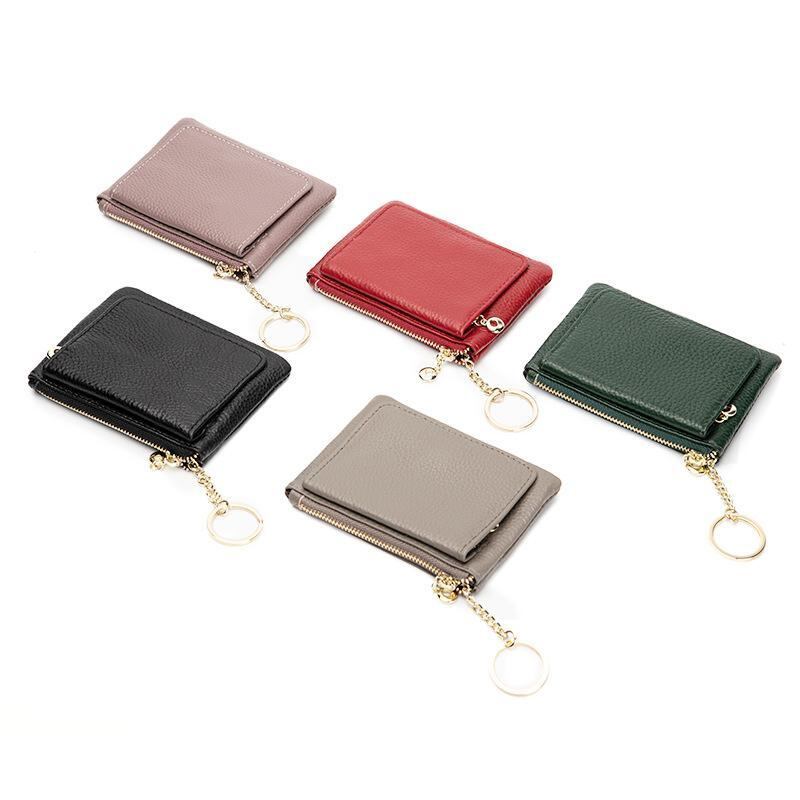 小銭入れ レディース 女性用 本革 牛革 レザー ファスナー キーホルダー付き コンパクト スリム 上質 シンプル カジュアル 普段使い ブラック ワインレッド グレー 多色展開