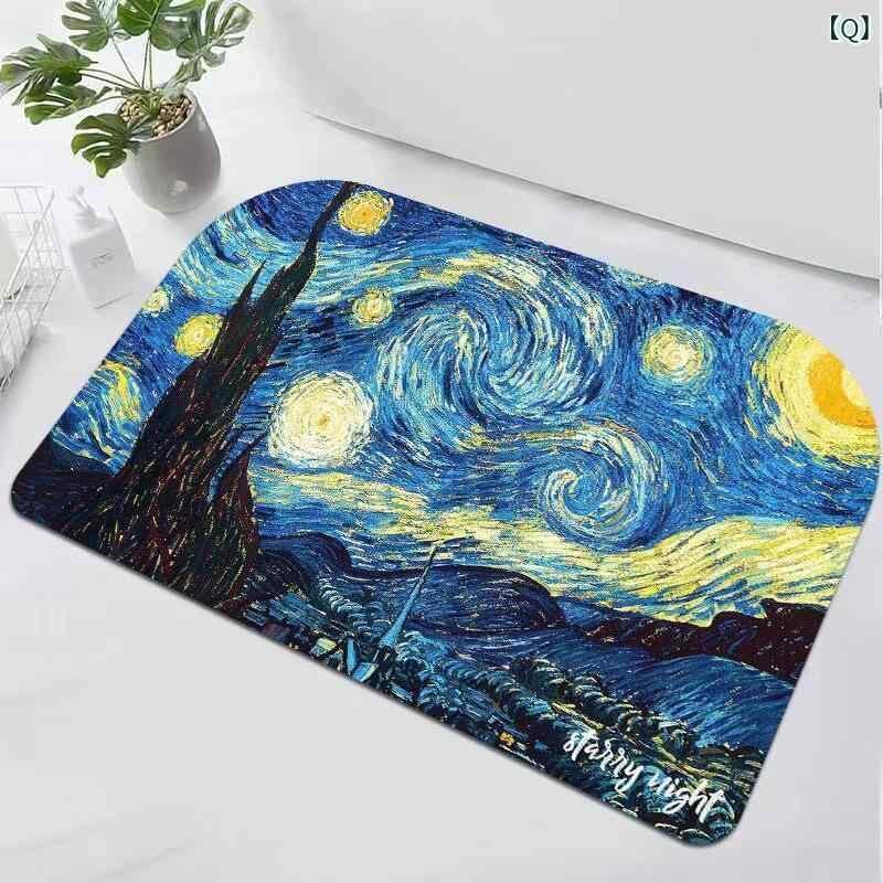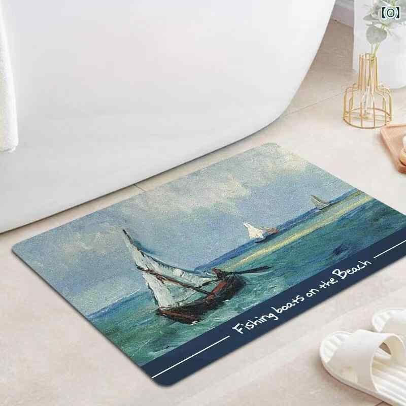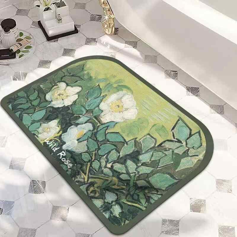 バスマット 珪藻土 吸水 速乾 滑り止め フロアマット アメリカンスタイル 油絵風 おしゃれ 家庭用 玄関 浴室 洗面所 寝室 植物 花柄 プリント ラグ