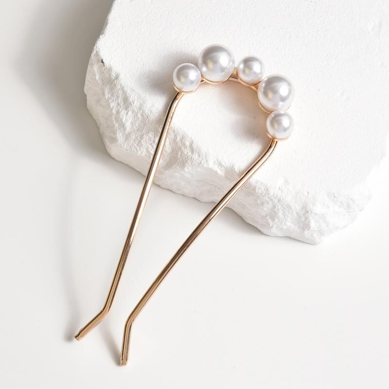 髪飾り 女性用 パール パール かんざし 簪 シンプル Uピン U字型 まとめ髪 ヘアアレンジ 高級感 新中華風 クラシック ゴールド 結婚式 普段使い